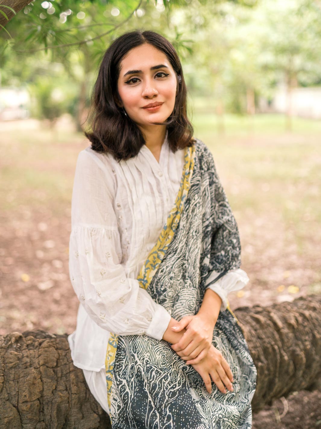 A very beautiful & Stylish Stole crafted from high quality materials. This fabric not only ensures durability, but making it an ideal choice for those seeking to enhance their wardrobe with a classic yet contemporary aesthetic & the contrasting colors enhances the fabric's versatility.