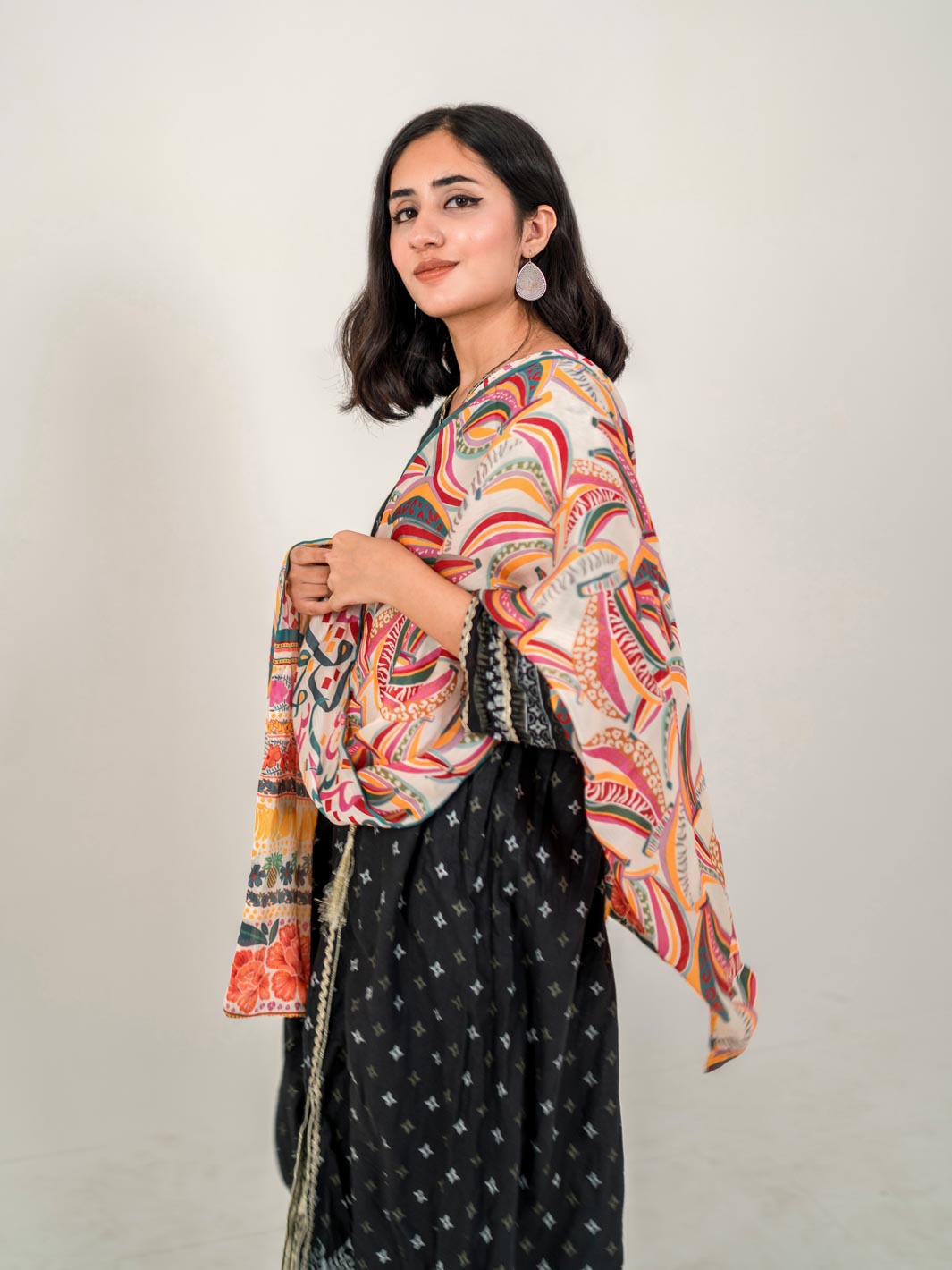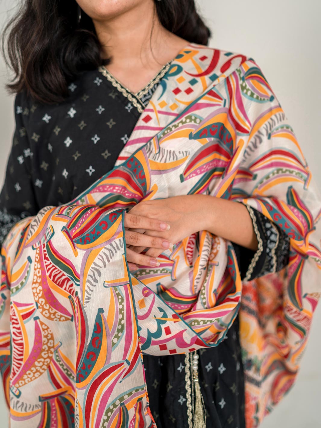 A very beautiful & Stylish Stole crafted from high quality materials. This fabric not only ensures durability, but making it an ideal choice for those seeking to enhance their wardrobe with a classic yet contemporary aesthetic & the contrasting colors enhances the fabric's versatility.