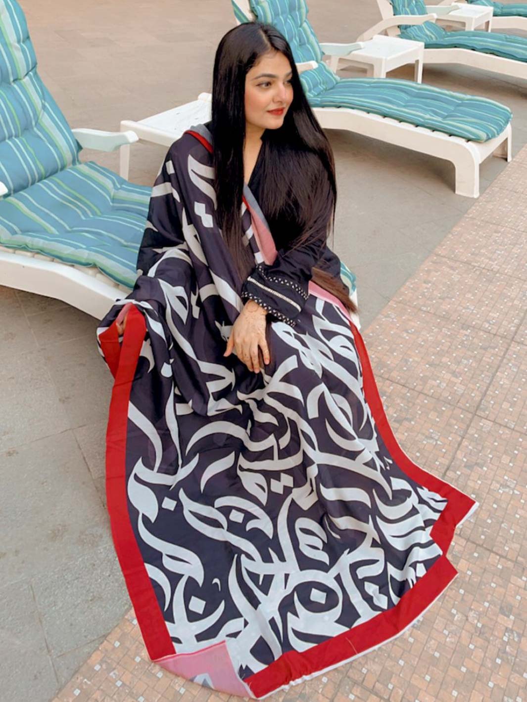 Huroof Silk Dupatta (Black)