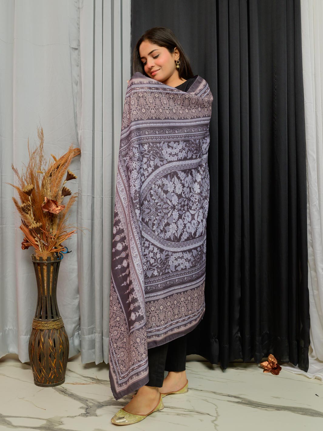 Mughal Darbar Dupatta (Black)