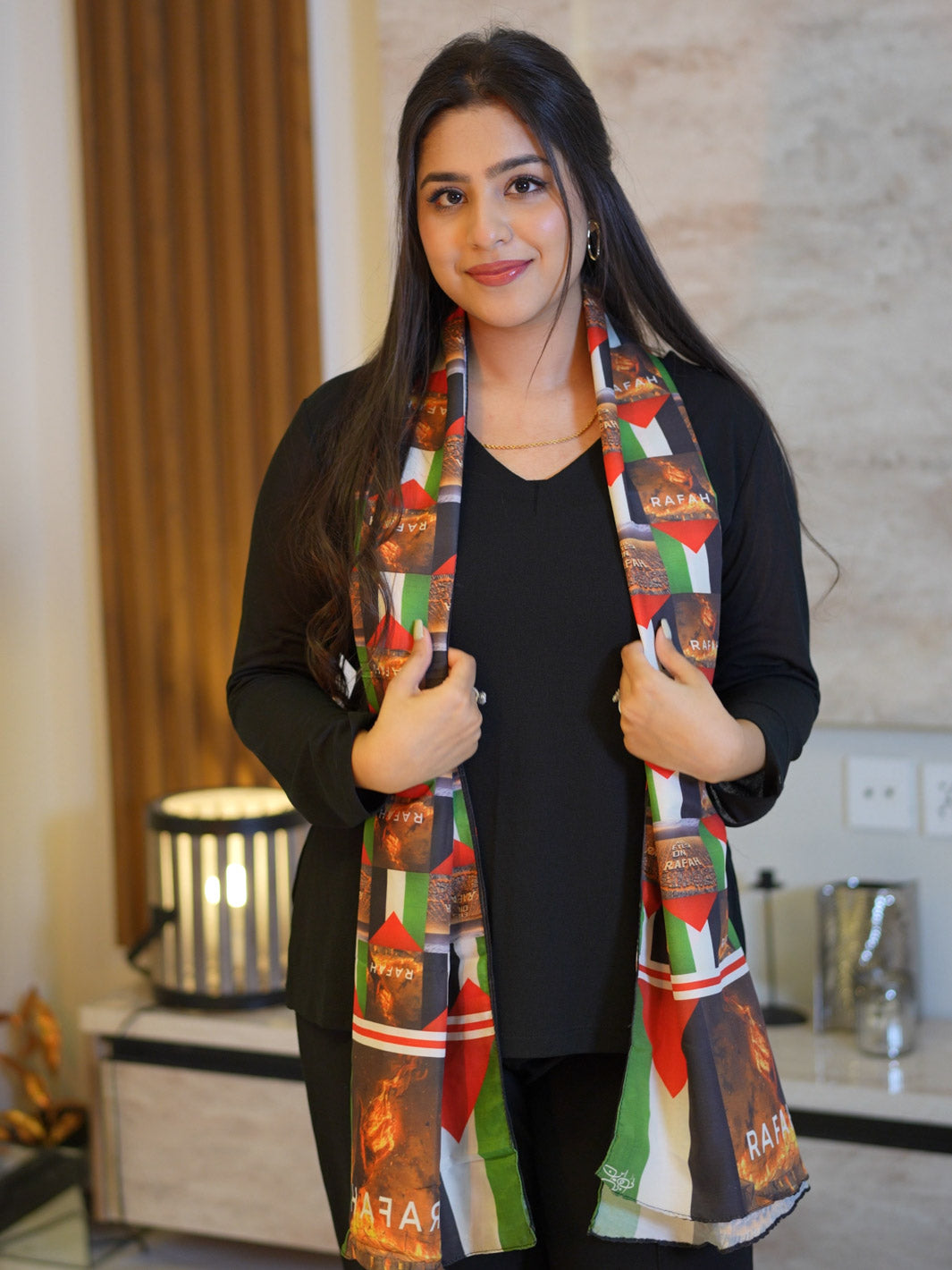 A very beautiful & Stylish Stole crafted from high quality materials. This fabric not only ensures durability, but making it an ideal choice for those seeking to enhance their wardrobe with a classic yet contemporary aesthetic & the contrasting colors enhances the fabric's versatility.