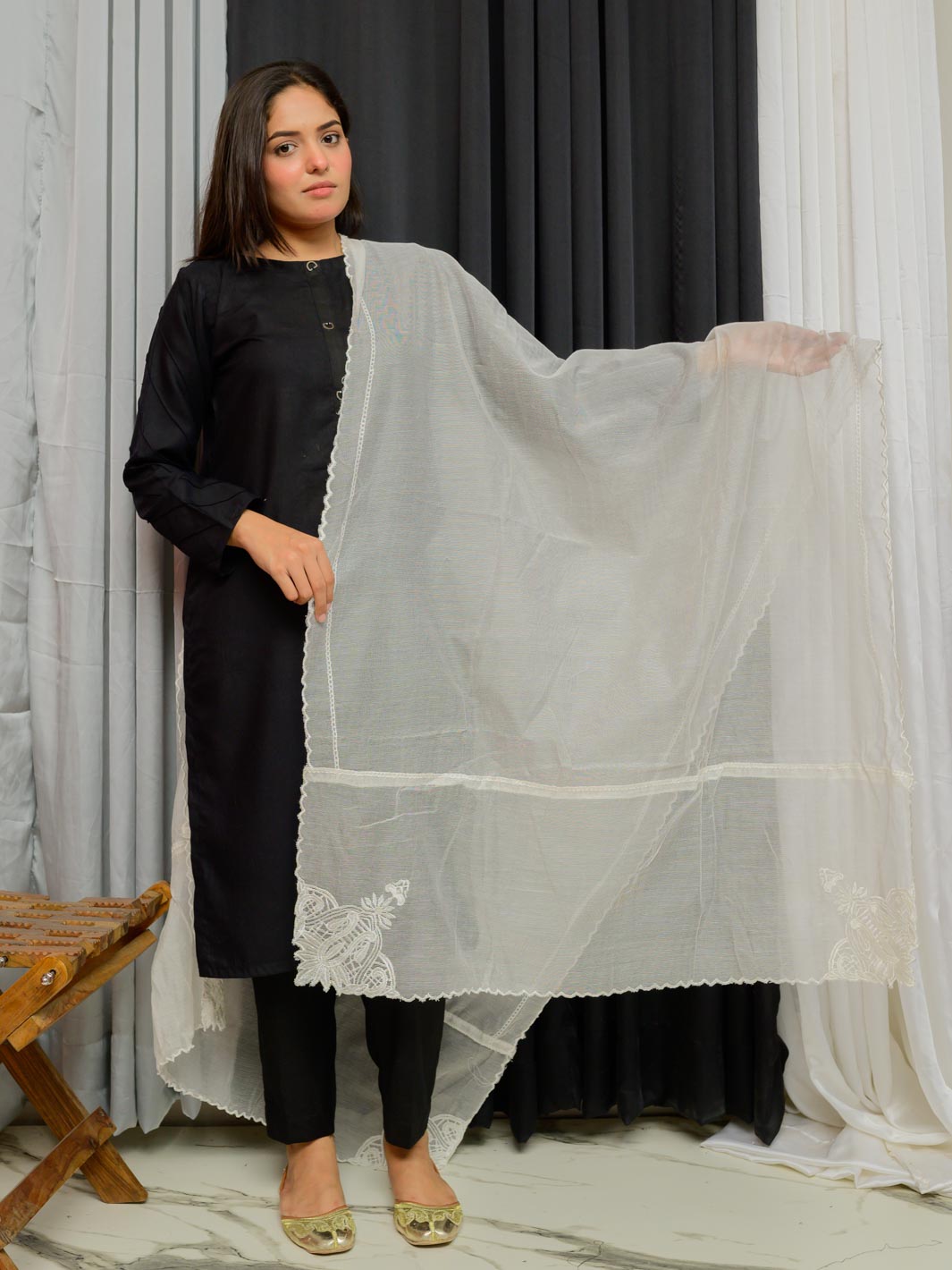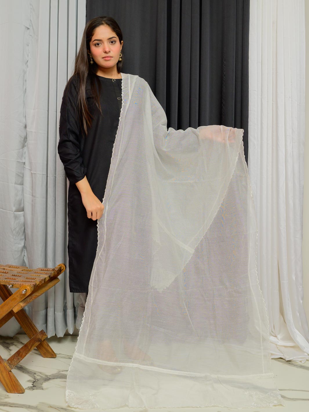 Khaddi Net Embroidered Dupatta (Off White 0010)