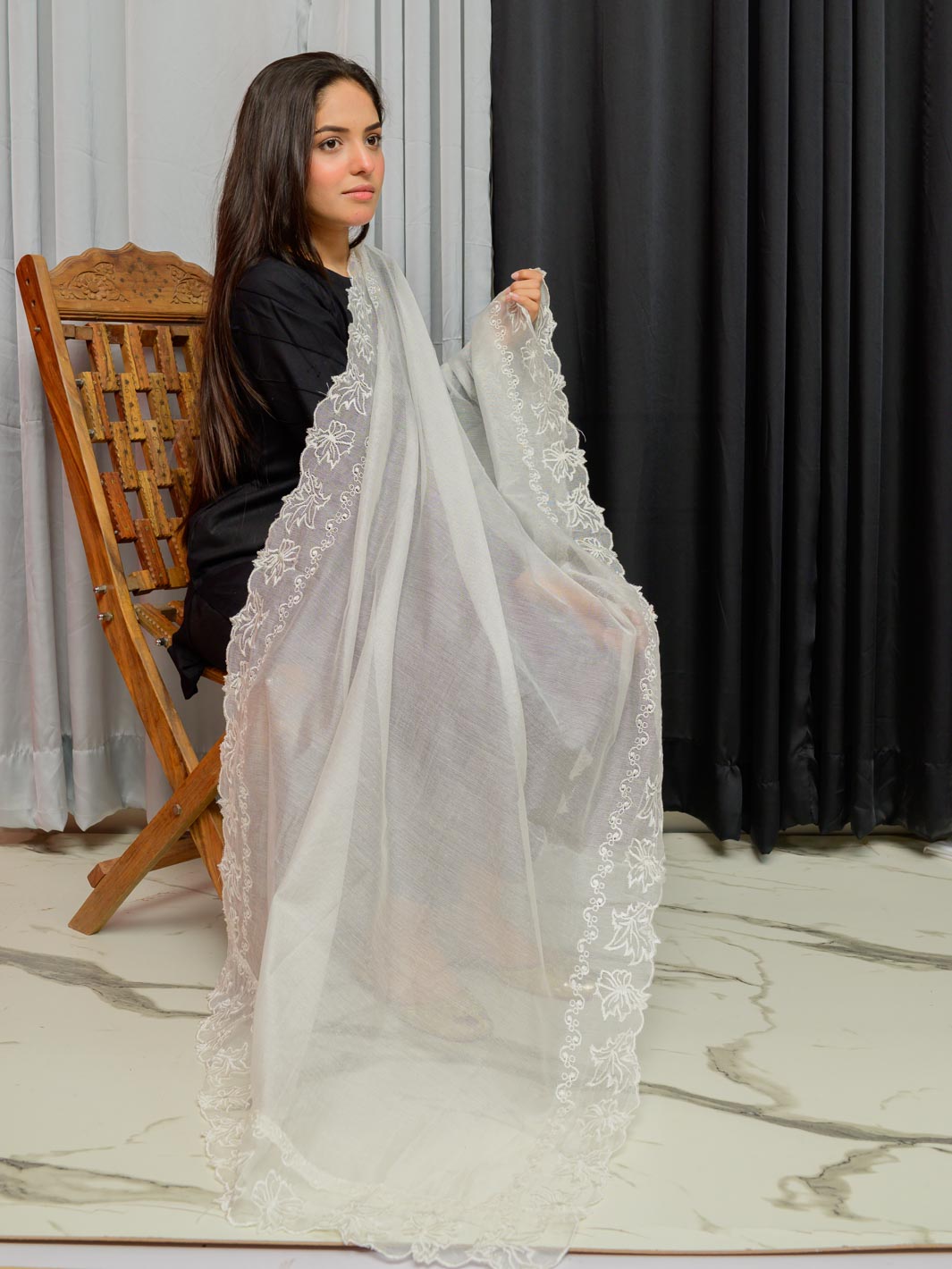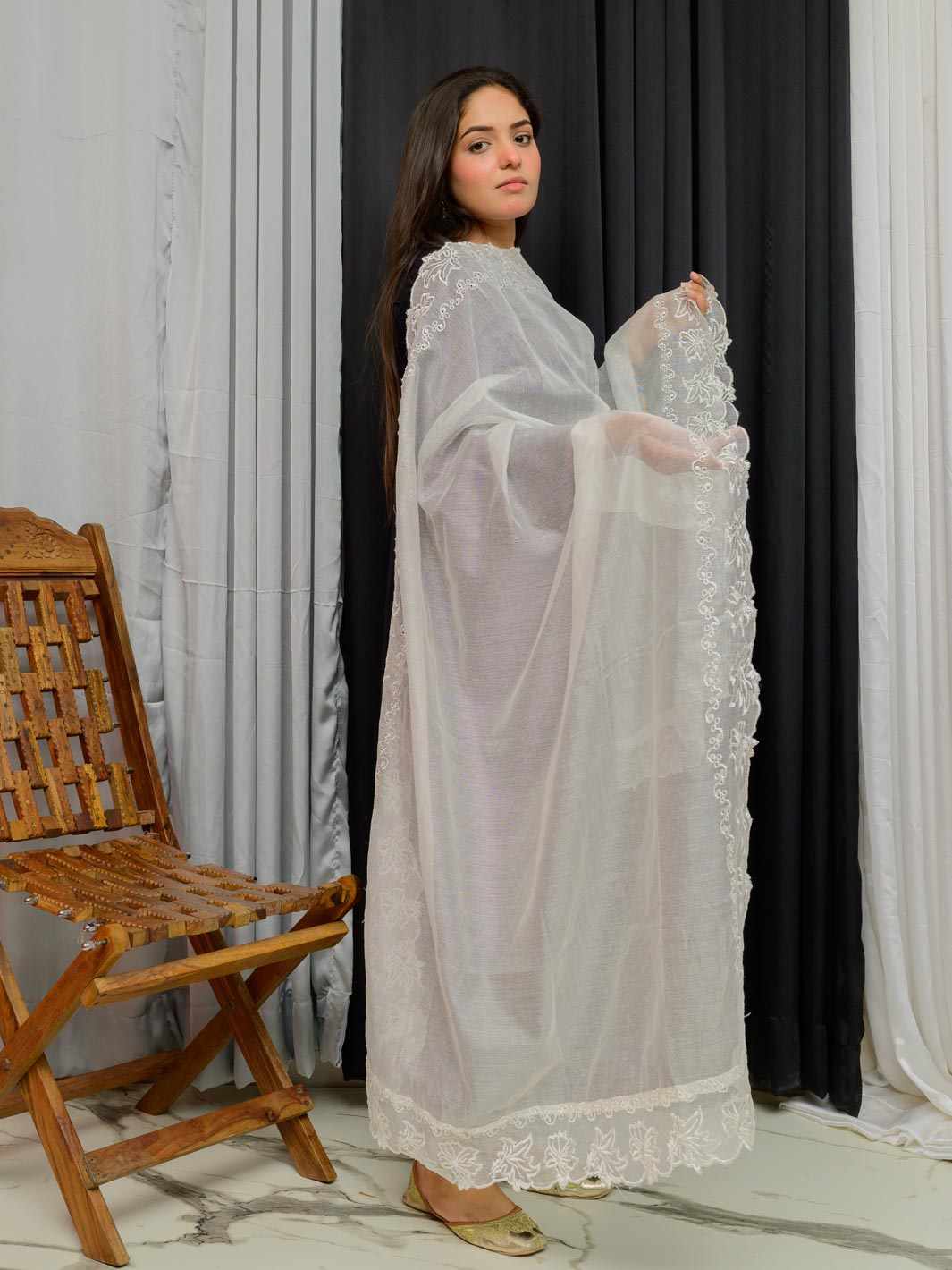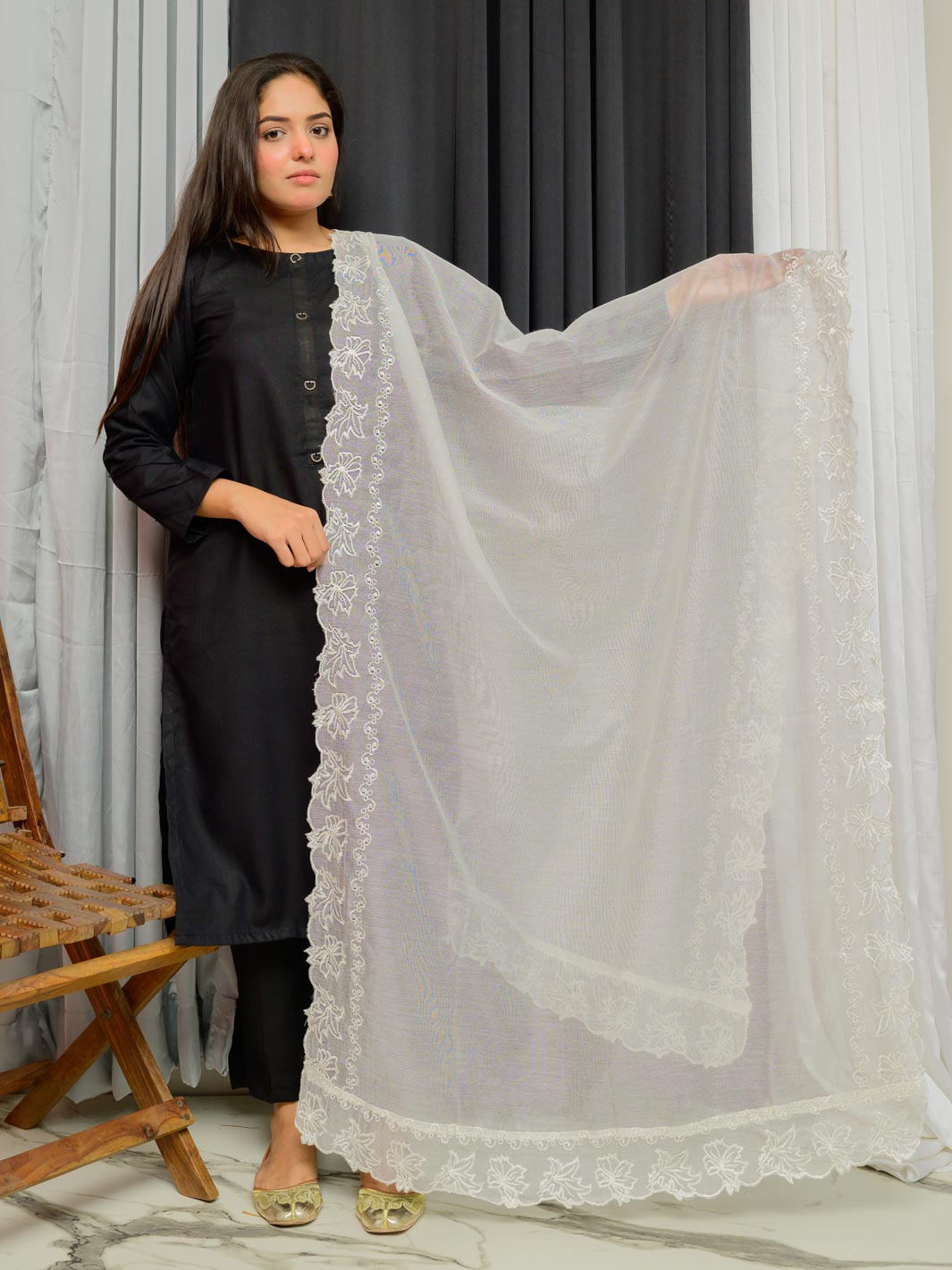 Khaddi Net Embroidered Dupatta (Off White 002)