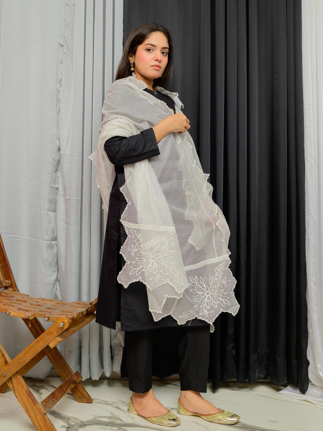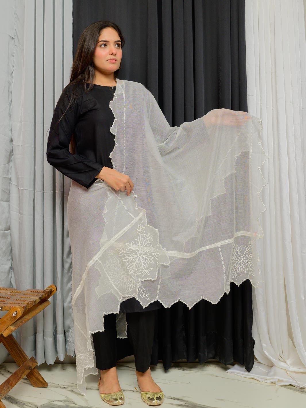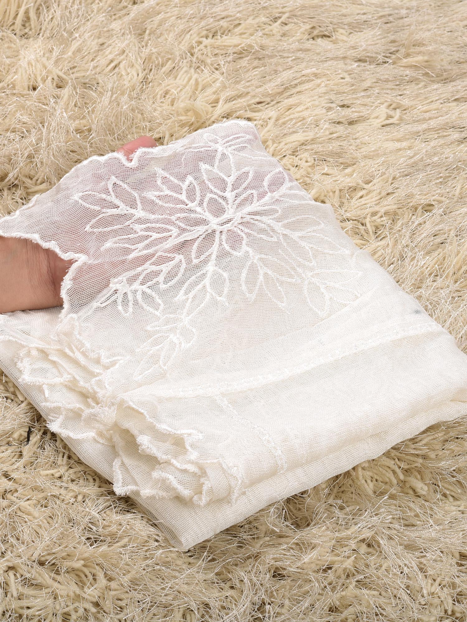 Khaddi Net Embroidered Dupatta (Off White 007)
